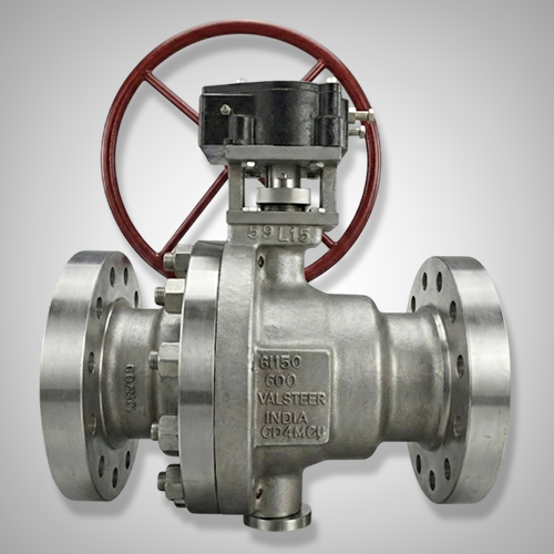 Generally VALSTEER Ball Valves in 150# Valves up to 150 NB, 300# and 600# Valves up to 100 NB and higher pressure ratings like 900# and higher ratings of 50 NB and higher sizes are provided with Trunnion Mounting Balls and Manual Gear operation feature. These features are subject to modification according to customer requirements.